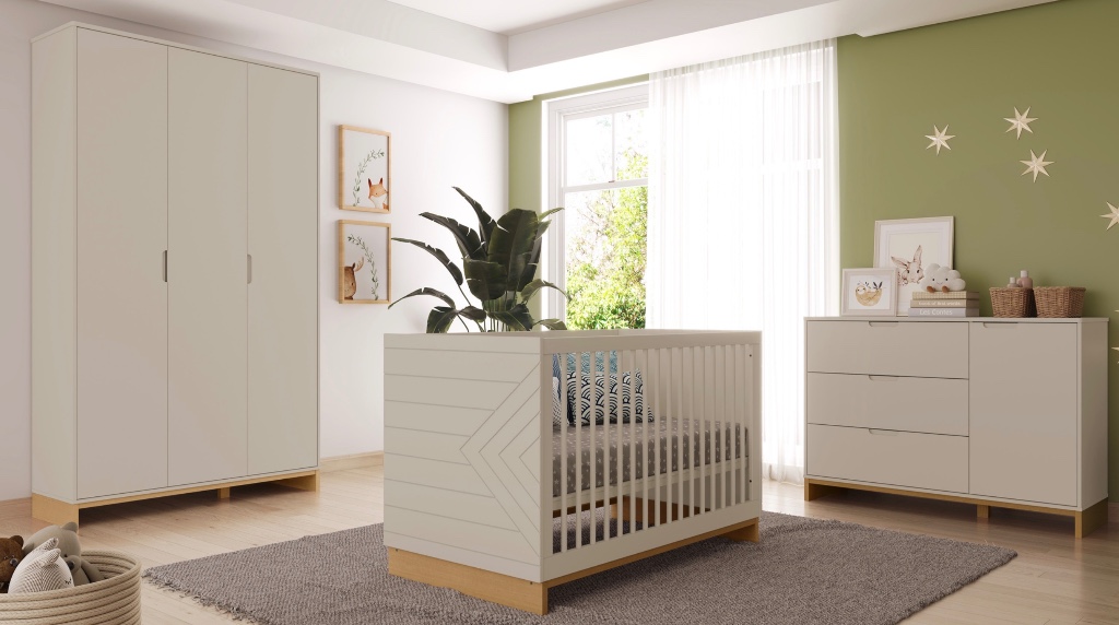 Outro ponto essencial da decoração de quarto bebê em 2026 é a escolha do mobiliário. O foco deixa de ser o “agora” e passa a ser a jornada.